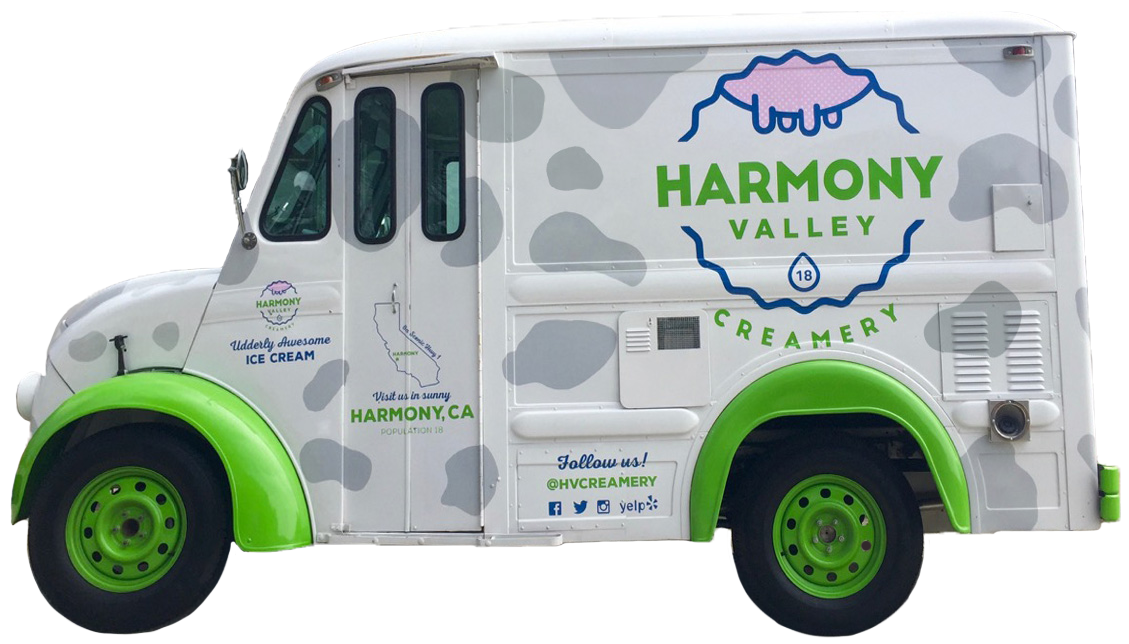 Catch the Harmony Valley Creamery Scoop Truck serving up cups 'n' cones of delicious craft ice cream all across San Luis Obispo County!