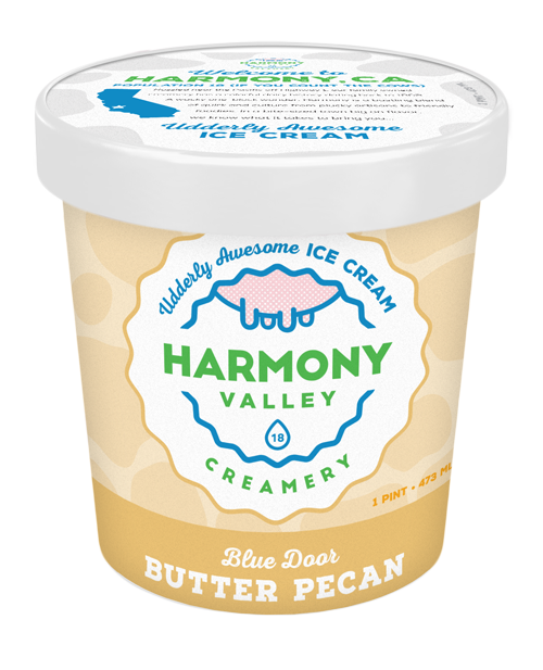 No one knows exactly why Harmony’s blue door is so irresistable, but we can share why our Blue Door Butter Pecan ice cream is: each pecan piece is packed with sweet and salty candied goodness.